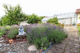 • Gražiai sutvarkyta aplinka su vaismedžiais, uogynais ir dideliu stiklo šiltnamiu.