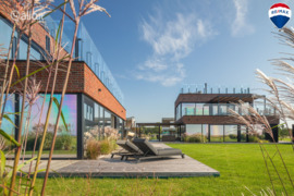 Namas pasižymi modernia architektūra, maksimaliu komfortu ir nepriekaištinga statybos kokybe. Ant stogo įrengta erdvi terasa, iš kurios atsiveria nepakartojami marių horizontai ir Neringos kopų panorama – tai vieta, kur saulėlydžiai atrodo tarsi meno kūriniai.