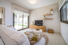 Naujas trijų kambarių kotedžas Algorfa priemestyje, šalia golfo aikštyno. 2 miegamieji, 2 vonios kambariai, bendras plotas 72 m2, terasa 22 m2. Komplekse yra bendras baseinas ir privačios parkavimo vietos. Tinka pastoviam gyvenimui ir nuomai. Šalia yra visos reikalingos paslaugos.