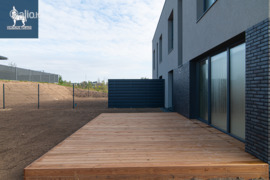 • Erdvus svetainės ir virtuvės plotas su išėjimu į 25 m² medinę terasą;