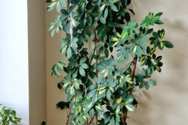 Šviežiai šįmet persodinta labai aukšta graži ilgametė šeflera ieško dar erdvesnių namų.