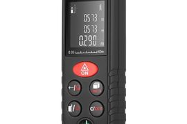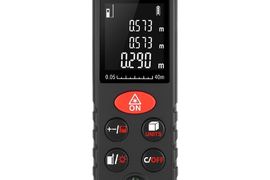 Lazerinis atstumo matuoklis matuojantis iki 40m atstumu. Matavimo paklaida 2mm, matavimo greitis 0,25s, šviečiantis LCD ekranas. Veikia su dviem AAA tipo baterijomis.
