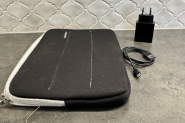 Komplekte dėklas, laidas ir adapteris.