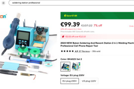 litavimo stotelė 938BD+, tai naujausias šio gamintojo kūrinys su moderniai atrodančiu sumažintu korpusu, valdymo panelė patogiau išdėstyta 45 laipsnių kampu, padidintas lituoklio galingumas iki 60 W, LCD ekranas, kalibravimo ir "miego" nustatymo, kad nenaudojamas lituoklis nekaistų, režimais. Maksimali kaitros temperatūra 480 laipsniu. Joje modernizuotas lituoklio laikiklis, kuris papildytas lydmetalio ritės laikikliu, lituoklio antgalių dėklu, antgalių valikliais su silikono apvadu. Komplektacijoje yra: Penki lituoklio ir 4 feno antgaliai, lydmetalis, termo juostelė, pincetai, antgalių valiklis, vario rankovė lydmetalio nuėmimui, nusiurbėjas lydmetaliui ir puikus atsuktuvėlis su keičiamais antgaliais. Jos kaina 90 eurai.