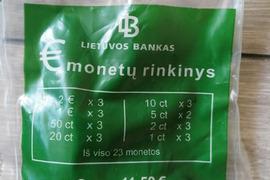 Numizmatika (monetos, banknotai) | Pirmi lietuviški eurai. Maišelis- 15 eurų.