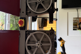Parduodu juostines pjovimo stakles medienai "Paulimot MJ9". Staklės parvežtos iš Vokietijos, naujos, sureguliuotos - išpakuoji, priverži stalviršį ir pjauni. Nedidelės, su rankena pernešimui, labai tyliai dirba. Pjovimo aukštis 90mm. Stalviršis lieto metalo, pasukamas 45' kampu. Yra juostos greito atlaisvinimo rankena, nes kai nesinaudoji reikia atlaisvint juostą, kad nevargtų metalas. Juostos kreipimo mechanizmas ir viršuje ir apačioje turi po tris guolius. Staklių apačioje yra stalčius pjuvenoms ir pajungimo anga dulkių siurbliui. yra ir led apšvietimo lempa. Priedas prie stakliu 3 pjovimo juostos: 6mm, 8mm, 10mm. taip pat atsarginis diržas varikliui ir atsarginė plastmasė stalo angai, taip kad ilgai dar nekels jokių rūpesčių. Norėjau sau pasidaryt Kalėdinę dovaną, bet supratau, kad mano projektui reikia žymiai didesnių staklių