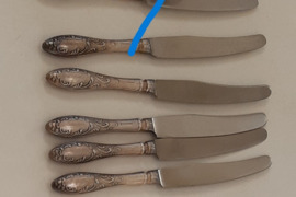 Melchioriniai stalo įrankiai po 2-3 eur, mažos šakutės po 1,5 eur.