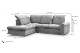 Naujas minkštas kampas „Gabos” su miegojimo funkcija ir dėže patalynei.