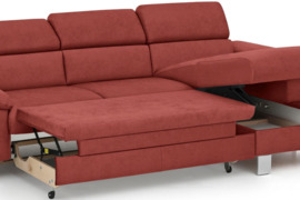 Minkštas kampas L formos Nr149 raudonas su miego funkcija ir dėze, Naujas Komplektai