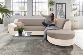 Kreminės spalvos alkazare audinys +pilkos spalvos struktūrinis audinys