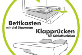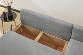 Minkštas universalus kampas „Polaris“ su miego funkcija ir dėže patalynei.