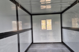 Moduliai apšiltinti (5 cm. sienos ir lubos), pilna elektros instaliacija (įvadas, apšvietimas, 2 dvigubos rozetės), rakinamos įėjimo durys, 2 varstomi langai. Modulio matmenys (PlotisXaukštisXilgis): 2,5x2,5x5,8 m. Svoris ~1 T.