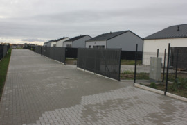 ✔ Kiemo dalis – grįsta trinkelėmis pagal projektą, aptverta segmentine tvora