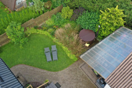 Sklypas zonuotas - poilsio zona (saulėtoje vietoje terasa, kubilas), gėlynai; sodo ir daržo zona - vaismedžiai ir vaiskrūmiai, šilauogių krūmai, juodieji serbentai, agrastai, avietės. Didelis 33 m2 šiltnamis su polikarbonatine danga daržovėms auginti