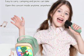 Daugiafunkcis karaoke aparatas: Turi 4 rūšių magiškus balsus, smagius ir įdomius balsų efektai kur kas pagyviną dainuojančio balsą. LED lemputės plaka pagal muzikos ritmą, sukurdamos smagią atmosferą. Ausinių išvestis gale. Puikiai tinka dainavimo praktikai, namų šeimos karaoke, pakankamai mažas, kad galėtumėte pasiimti su savimi keliaujant.