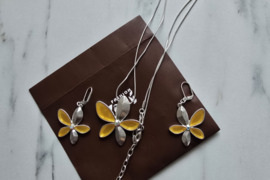 Moterims | Rinkiniai | Geltona | Naujas <br /> Naujas, dailus, rinkinukas geltonos gėlės su akutėmis Grandinėlės ilgį galima sumažinti ir padidinti. Atrodo įspūdingai.
