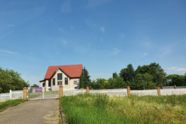 80 a sklypo teritorijos aptverta tvora. Sklype yra tvenkinys, šiltnamis, šulinys, sodas.