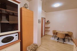 Dušo kabina, Plastikiniai vamzdžiai, Skalbimo mašina, Su baldais, Šaldytuvas, Viryklė, Virtuvės komplektas
