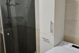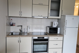 Dušo kabina, Plastikiniai vamzdžiai, Skalbimo mašina, Su baldais, Šaldytuvas, Viryklė, Virtuvės komplektas