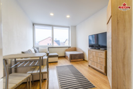 Butas įrengtas tvarkingai ir funkcionaliai. Kambaryje yra minkštas kampas, lova, spinta, komoda, televizorius, valgomojo stalas su kėdėmis. Virtuvės zona kompaktiška, su šaldytuvu, virykle, gartraukiu ir spintelėmis daiktams laikyti. Vonios kambarys su dušu, tualetu, skalbimo mašina. Interjere vyrauja šviesūs tonai, butas jaukus, prižiūrėtas ir paruoštas gyventi iš karto.