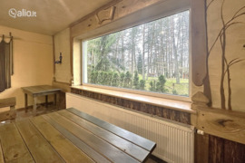 – ANT VIENO IŠ TVENKINIŲ KRANTO ĮRENGTA PIRTIS SU ERDVIA MANSARDA - MIEGAMUOJU, PAMIŠKĖJE - LAUKO PAVĖSINĖ;