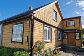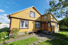 Namas rąstinis, apkaltas medinėmis lauko dailylentėmis. Namo dalis yra dviejų aukštų. Pirmajame namo aukšte yra trys kambariai, virtuvė, holas, ir vonios/tualeto kambarys. Antrajame namo aukšte yra 2 miegamieji kambariai. Bendras namo dalies plotas – apie 66 kv. m. Name įrengtas vietinis centrinis šildymas kietu kuru. Įvestos miesto vandentiekio ir nuotekų sistemos.