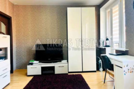 virtuvė apie 7 kv. m., kambarys 18 kv. m., WC kartu su vonia, šarvuotos durys, plastikiniai langai, laminatas, parduodamas su visais baldais.