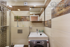 - Vonia ir WC – sujungta patalpa, sumontuotas praustuvas virš skalbyklės, nerūdijančio plieno gyvatukas, pakabinamas WC;