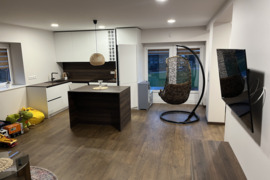 Su baldais, Šaldytuvas, Šildomos grindys, Virtuvės komplektas, Indaplovė, Viryklė, Plastikiniai vamzdžiai