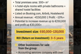 Siūlome pilnai veikiantį ir pelningą Hotelio & Hostelio verslą, įsikūrusį pačiame Vilniaus centre. Unikalus mišrus modelis jungia viešbučio tipo privačius kambarius ir bendro hostelio erdves, todėl pritraukiama plati klientų bazė – nuo porų, ieškančių patogumo, iki taupių keliautojų, norinčių nebrangaus apgyvendinimo.
