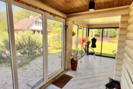- Didelė įstiklinta terasa suteikia galimybę mėgautis aplinkos grožiu bei ramybe