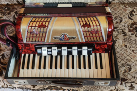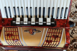Akordeonas BARCAROLE MAGISTER 96 bosų; 4 chorų; 37 klavišų; balsų 11 registrų; bosų 3 registrai; registro Nr. 35208. Visiškai tvarkingas, tinka muzikos mokyklos vyresniųjų klasių mokiniams arba koncertavimui. Nauji odiniai specialus diržai, kietas tvarkingas dėklas.