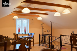 • Lankstus vidinis išplanavimas – 153 m² erdvėje galite įrengti sales, kabinetus ar kūrybines dirbtuves; aukštos lubos. Dabartinėje apdailoje yra didelė salė antrame aukšte, tinkanti maitinimui ar renginiams, tačiau lengvai gali būti pakeista į darbui skirtas erdves.
