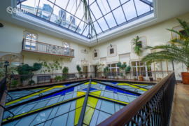 The office/s are equipped with kitchens, cloakrooms, server rooms, an archive-warehouse, and there is also an impressive space for leisure or meetings with a winter garden.