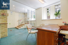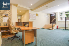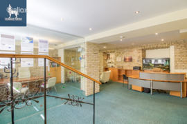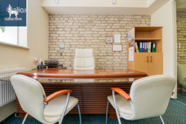 Funkcionaliai suplanuota erdvė: įrengta reprezentatyvi priėmimo zona su recepcija bei laukiamuoju klientams, šalia stiklinėmis pertvaromis suformuotas vadovo kabinetas, suteikiantis privatumą ir išskirtinumo pojūtį.