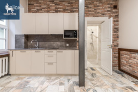 Interjere – aukštos lubos, kokybiškos apdailos medžiagos, jau įmontuoti baldai, todėl galima iš karto pradėti veiklą be papildomų investicijų. Puikiai tinka biurui, kūrybinei studijai, konsultacinei ar kitai administracinei veiklai.