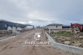 Sklypas išlyginamas. Sumontuojami tvoros kuoliukai. Kiemas išklojamas trinkelės 80 kv.m. Asfaltuota gatvė, sumontuotas gatvių apšvietimas, pėsčiųjų takas.