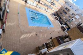 2-jų kambarių renovuotas apartamentas su bendru baseinu, Ispanijoje, Alicante provincijoje, Torrevieja mieste, bendras plotas 40 m², 600 metrų iki jūros, 45 kilometrai iki Alicante oro uosto. Turtui priklauso bendras baseinas, terasa, liftas. Netoli turto yra parduotuvės, restoranai, vaistinės, autobusų stotelės, degalinės, žalios zonos, kavinės