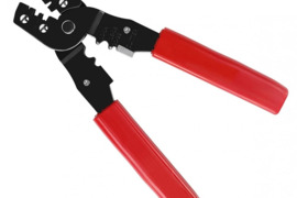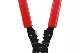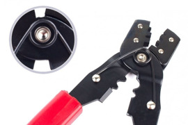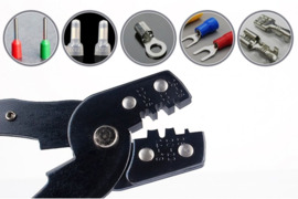 Grūdinto metalo universalus užspaudimo įrankis neizoliuotiems ir izoliuotiems kištukams bei jungtims. Yra peilis kabelių kirpimui.