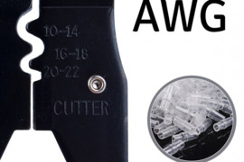 - Galimybė presuoti jungtis kabeliams, kurių storis svyruoja nuo 10 iki 28 AWG