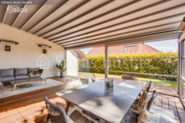 Pirmas namo aukštas - (didysis kambarys/svetainė - valgomasis, virtuvės zona ir holas, privatus darbo kambarys su atskiru įėjimu į WC, garažas). Išėjimas iš svetainės į uždarą lauko terasą (suskleidžiamas terasos stogas, įrengti infraraudonųjų spindulių šildytuvai, įrengtas galingas dūmtraukis, galima naudotis lauko kepsnine net uždaromis terasos durimis).