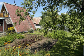 Sodo sklypas su karkasiniu mediniu namu (42,40m2),viduje židinys,rūsys.