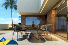 4-ių kambarių statomi namai, Ispanijoje, Alicante provincijoje, Orihuela Costa mieste, 1 kilometras iki jūros, bendras plotas 125 m², 65 kilometrai iki Alicante miesto oro uosto. Netoli turto yra parduotuvės, restoranai, autobusų stotelės, vaikų zonos, degalinės, žalios zonos, kavinės, ligoninė