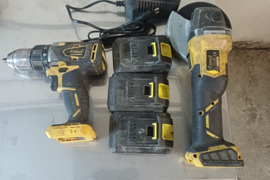 Parduodami kartu naudoti suktuvas ir kampinis šlifuoklis BAVARIA su trimis akumuliatoriais ir pakrovikliu.