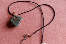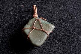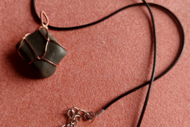 Titnago amuletas pakabukas apipintas perpintu variu žalios spalvos, Radviliškio r. sav.