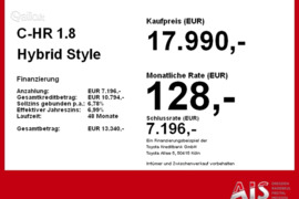 Markė, modelis: Toyota C-HR | Pagaminimo metai: 2019 m. | Darbinis tūris: 1.798 l | Galia: 96 AG (71.59 kW) | Kuro tipas: Hibridas (benzinas/elektra...