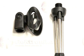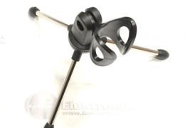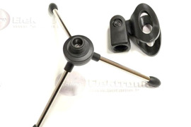 Trikojis stovas laikiklis mikrofonui. Puikus pasirinkimas, kai mikrofoną norima statyti ant stalo. Mikrofono trikojis stovas laikiklis leidžia keisti mikrofono laikymo kampą, lengvai reguliuojamas. Kojų ilgis 10cm. Laikiklio galva prisukama sriegiu. Pastatyto laikiklio aukštis 16cm. Tinka mikrofonams, kurių storis laikymo srityje iki 30mm.
