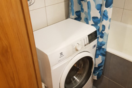 Su baldais ir buitine technika ( šaldytuvas, viryklė - orkaitė, skalbimo mašina).