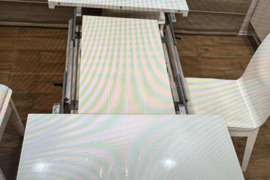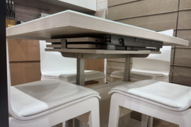 Labai mažai naudotas valgomojo stalas 4in1 prailginamas stalas gali būti kai žurnalinis – rinkitės vieną iš trijų dydžių ir galima reguliuoti aukšti, juos keiskite pagal poreikį. Kompaktiškas kasdienei – puikiai tinka pusryčiams, darbui ar kavos pertraukėlei. Pridėjus vieną ar dvi papildomas plokštes – turėsite daugiau vietos pietums. Dvi papildomos plokštės ir Jūsų stalas paruoštas vakarienėms su šeima ar susibūrimams su draugais. Kompaktiškas ir funkcionalus – neprailgintas stalas užima nedaug vietos, todėl tinka mažesnėms erdvėms, prireikus jis gali būti patogiai pritaikytas ir didesniam svečių skaičiui. Komplekte 4 medines kėdes.