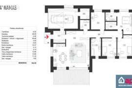 • Šildymas: įrengtas grindinio šildymo vamzdynas atskirais kontūrais į kiekvieną kambarį (be kolektorių). Kolektoriai ir šilumos siurblys oras-vanduo montuojami atskiru susitarimu.